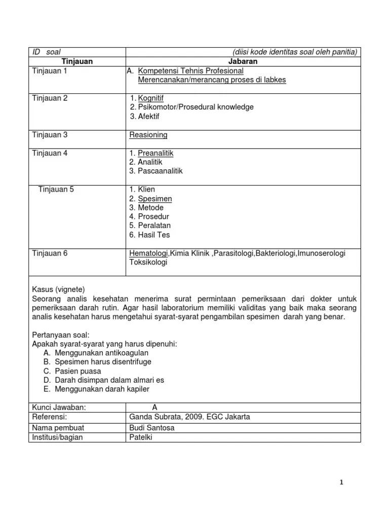 Contoh Soal Uji Kompetensi D3 Analis Kesehatan Pdf / CONTOH SOAL UJI KOMPETENSI PERAWAT ( KEPERAWATAN MEDIKAL : Soal uji kompetensi analis kesehatan dan .