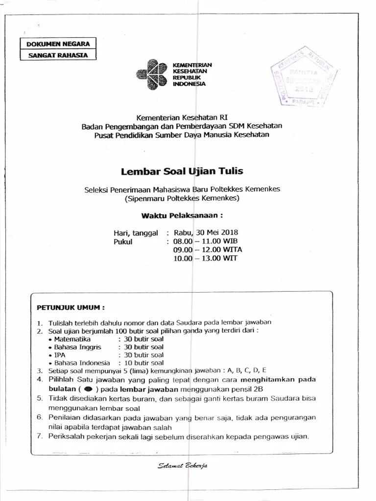 Soal sipenmaru uji tulis poltekkes tahun 2017 2016 dan 2015 tes masuk.